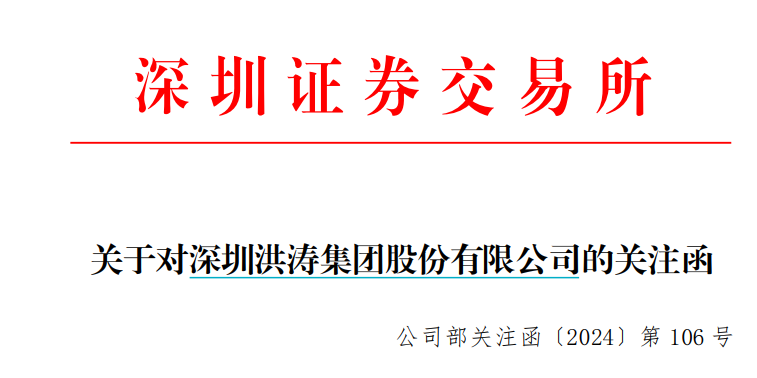 随着控股权转让,深交所向*ST洪涛下发关注函,直指公司披露的表决权委托和控制权转让的相关公告内容披露不完整,涉嫌误导投资者。